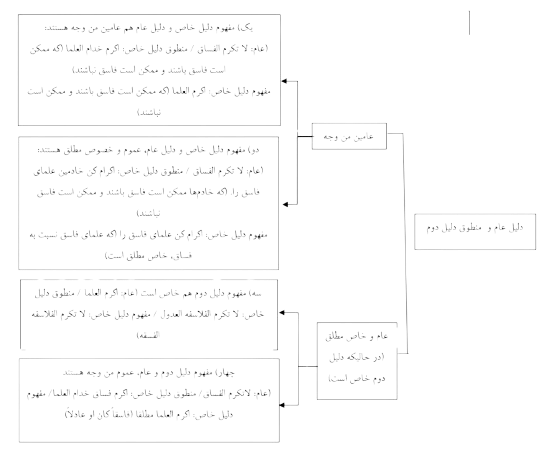 [عام: اکرم العلما / منطوق خاص: اکرام نکن فلاسفهی عادل را / مفهوم دلیل خاص: اکرام نکن فلاسفه فاسق را]