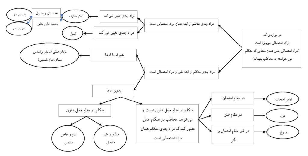 «ان محل الكلام في المقام انما هو الإطلاق المتصف به المعنى الأفرادي أعني به لحاظ المفهوم غير مقيد ببعض أصنافه أو افراده و مثل هذا الإطلاق يوجب سعة دائرة المعنى دائماً (و اما) الإطلاق المتصف به الجملة التركيبية أعني به ما يقتضيه طبع نفس القضية الموجب لسعة مدلول القضية تارة و لتضييقه أخرى فلا يقع البحث عنه في المقام إذ ليس لإطلاق الجمل التركيبية ضابط كلي يعرف به أحوالها من حيث ما يترتب على إطلاقها من الأحكام ضرورة ان إطلاق كل جملة له حكم يخصه و لا يعم غيره و لأجل ذلك لزم البحث عن إطلاق كل جملة بخصوصها في المورد المناسب له كما يبحث عما يقتضيه إطلاق صيغة الأمر في مباحث الأوامر و عما يقتضيه إطلاق القضية الشرطية مثلا في مباحث المفاهيم»[4]