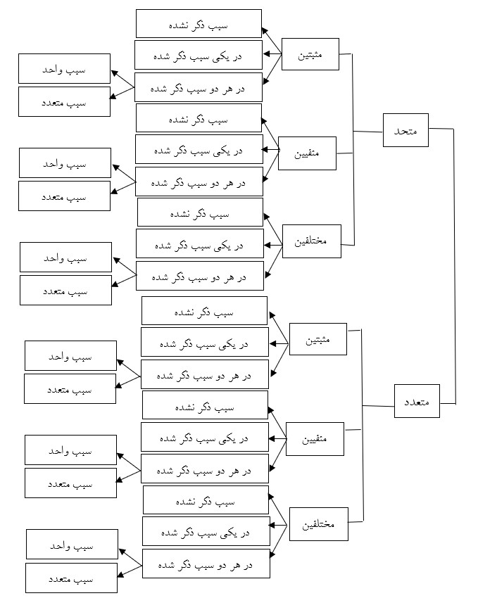 و على الستّة الأخيرة: كان السّبب واحدا أو متعدّدا، فيصير جميع الأقسام أربعة و عشرين: اثني عشر منها لتعدّد المحكوم به، و الباقي لاتّحاده.»[1]