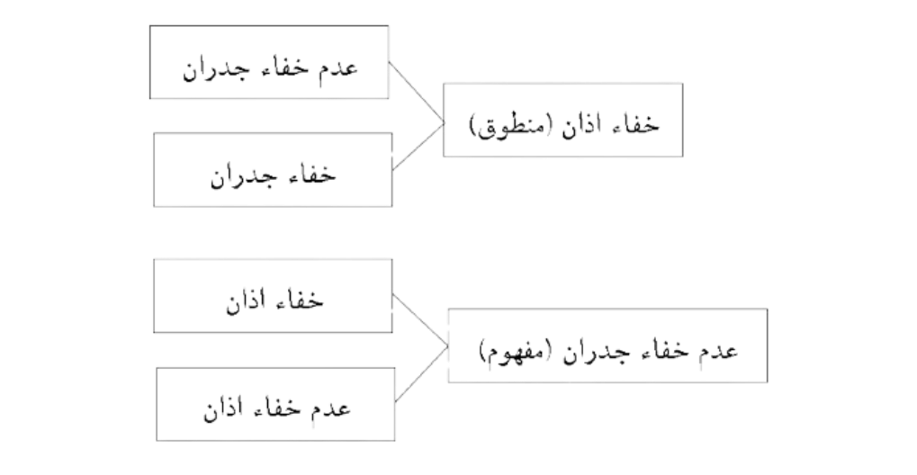 - از یک طرف قضیه اول، می گوید: «اگر اذان مخفی نشد، قصر نکن» (مفهوم) و از طرف دیگر قضیه دوم می گوید «اگر جدران مخفی شد، قصر بکن» (منطوق) و لذا در جایی که اذان مخفی نشده است ولی جدران مخفی شده است، دو دلیل تعارض میکنند