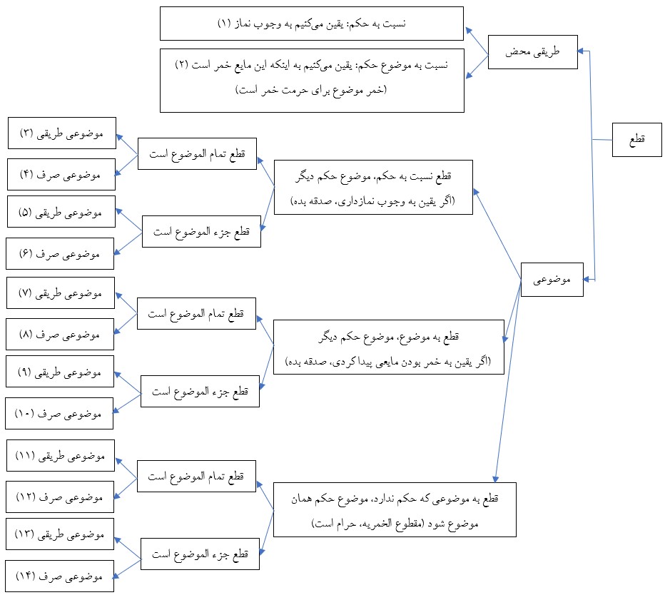 - جایی که قطع در موضوع اخذ شده است، چه در صورتی که تمام الموضوع است و چه در صورتی که جزء موضوع است: