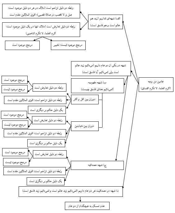 - در صورتی که دو عام من وجه موجود باشد («اکرم العلما» و «لاتکرم کل الرجل الفاسق»)، اگر میدانیم زید هم عالم است و هم فاسق است؛