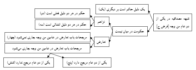 چنانکه در تصویر بحث گفتیم در همین فرض ج، هم میتوان بحث را به نحو تعارض هم فرض کرد.