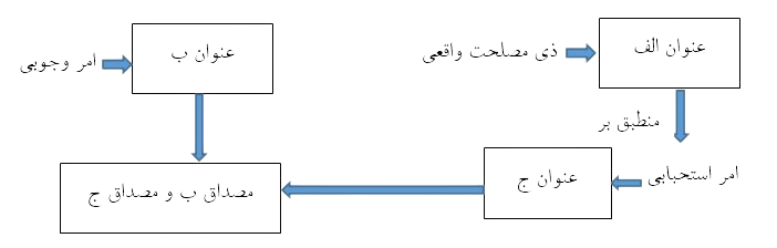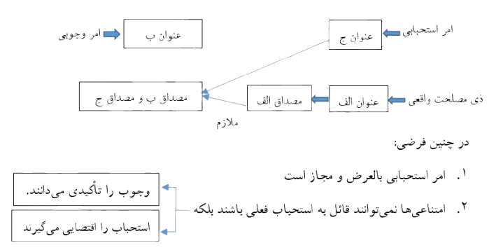 - [و کذا] ولی اگر وجوب مربوط به عنوانی است که بر این فرد خارجی مشخص منطبق است و استحباب مربوط به عنوانی است که بر لازمهی این فرد مشخص خارجی منطبق است (پس فی الواقع حکم متعلق به عنوان دیگری است ولی به صورت مجازی به عنوان ملازم تعلق گرفته است)
