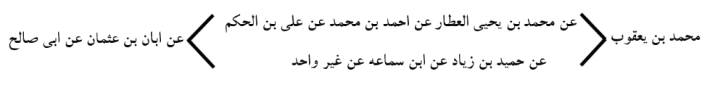 «وَ عَنْ مُحَمَّدِ بْنِ يَحْيَى عَنْ أَحْمَدَ بْنِ مُحَمَّدٍ عَنْ عَلِيِّ بْنِ الْحَكَمِ وَ عَنْ حُمَيْدِ بْنِ زِيَادٍ عَنِ ابْنِ سَمَاعَةَ عَنْ غَيْرِ وَاحِدٍ جَمِيعاً عَنْ أَبَانِ بْنِ عُثْمَانَ عَنْ أَبِي صَالِحٍ عَنْ أَبِي عَبْدِ اللَّهِ ع قَالَ: قَدِمَ عَلَى رَسُولِ اللَّهِ ص قَوْمٌ مِنْ بَنِي ضَبَّةَ مَرْضَى- فَقَالَ لَهُمْ رَسُولُ اللَّهِ ص أَقِيمُوا عِنْدِي- فَإِذَا بَرَأْتُمْ بَعَثْتُكُمْ فِي سَرِيَّةٍ- فَقَالُوا أَخْرِجْنَا مِنَ الْمَدِينَةِ- فَبَعَثَ بِهِمْ إِلَى إِبِلِ الصَّدَقَةِ- يَشْرَبُونَ مِنْ أَبْوَالِهَا وَ يَأْكُلُونَ مِنْ أَلْبَانِهَا- فَلَمَّا بَرَءُوا وَ اشْتَدُّوا قَتَلُوا ثَلَاثَةً مِمَّنْ كَانَ فِي الْإِبِلِ.» [8]